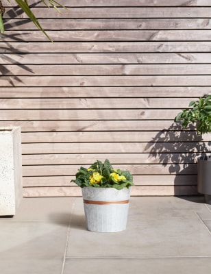 Round Oak Wooden Effect Resin Garden Barrel Planter Pot 49cm Indoor
