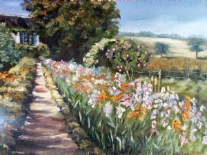 Gazebo With Flowers Flowers Garden Landscape Oil